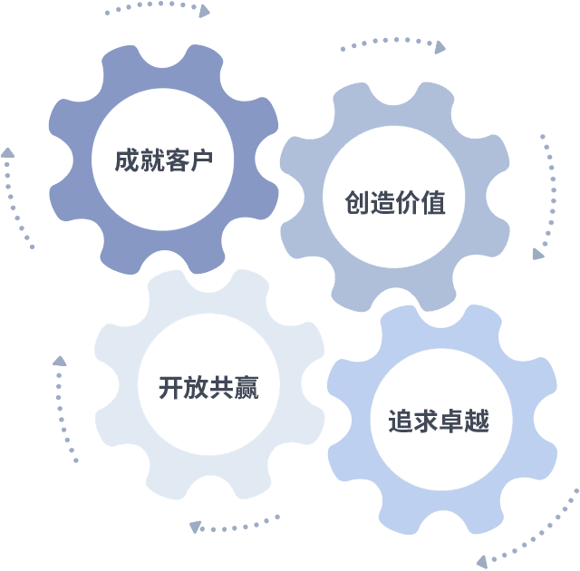 成就客户是一切决策的出发点,创造价值是衡量所有工作的标准,追求卓越是江南做事做人的态度,开放共赢是江南的格局也是最终的结果。价值观的齿轮环环相扣,推动着组织里的每个人不断向前。